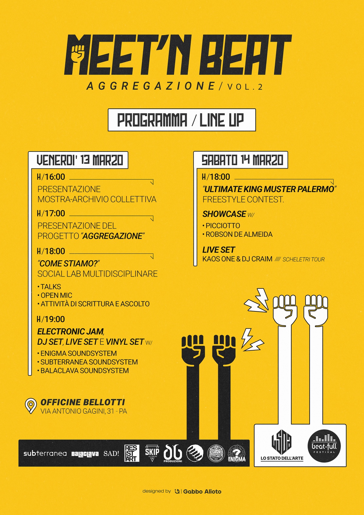 VENERDÌ' 13 MARZO & SABATO 14 MARZO Officine Bellotti via A. Gagini 31 - Palermo