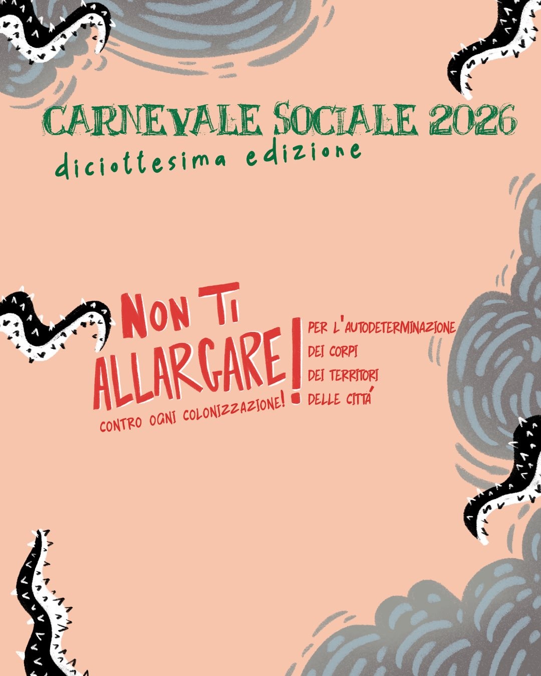 Il Carnevale Sociale attraverserà le strade per ribaltare questa narrazione. Lo farà con i linguaggi del corpo, della musica e della parola, per affermare che le città non sono colonie, i corpi non sono territori di conquista, i popoli non sono sacrificabili, la terra è la nostra casa.