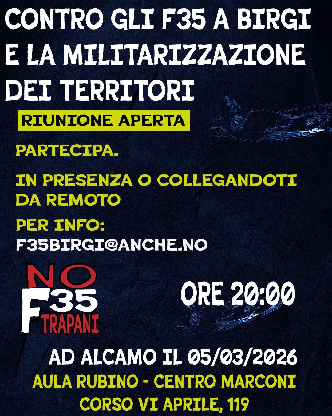Riunione aperta contro gli f35 a Birgi e la militarizzazione dei territori