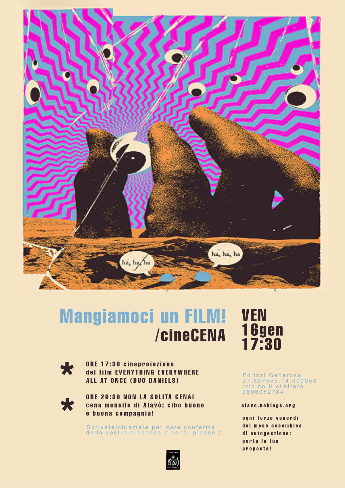 Dalle 15:30 assemblea si autogestione. Dalle 17:30 proiezione diel film "Everything everywhere all at once". Dalle 20 cenazza popolare vegetariana