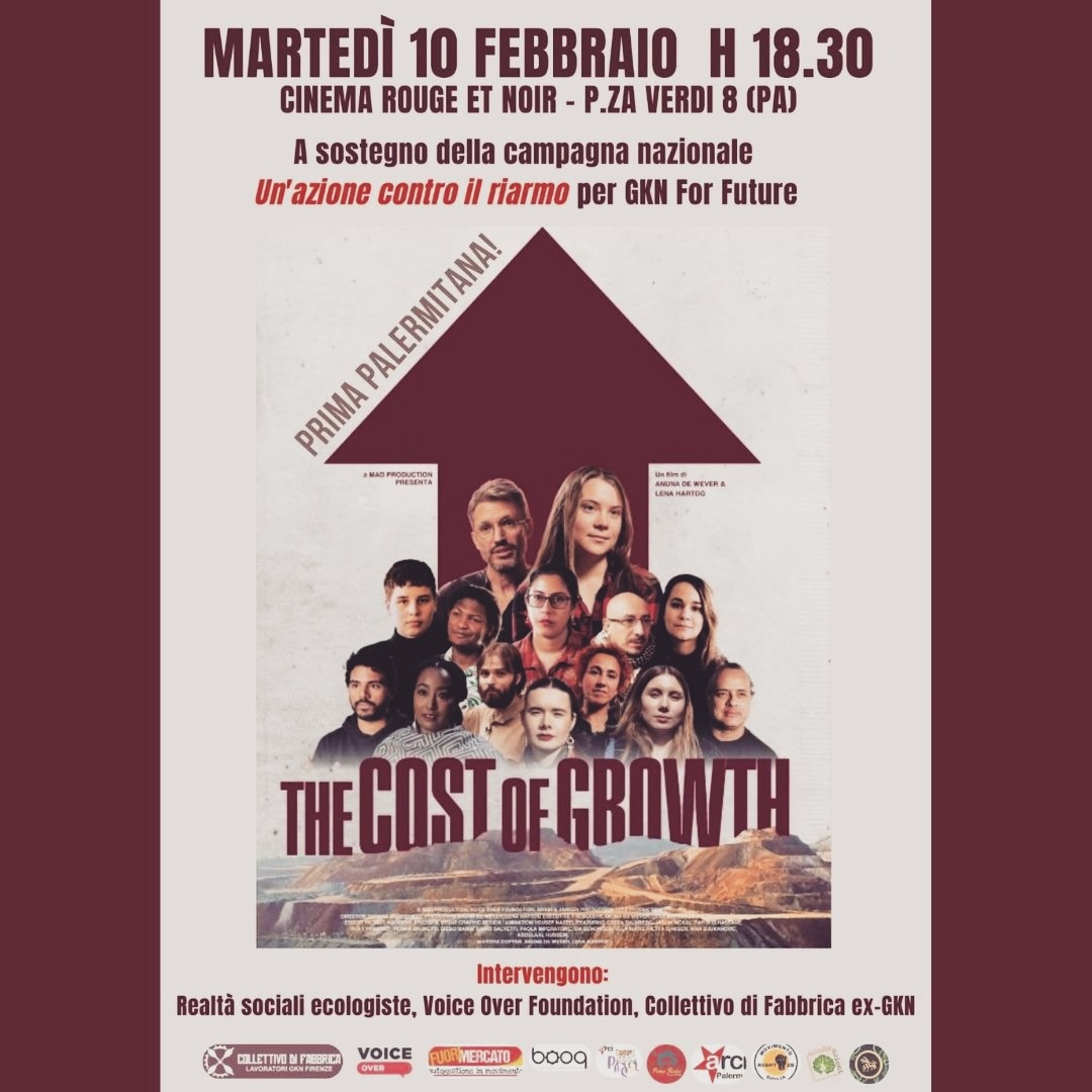 Per questo la proiezione per noi non sarΓ solo una proiezione, ma un momento in continuitΓ con le iniziative degli scorsi giorni in sostegno della campagna contro il riarmo in sostegno della cooperativa GKN for Future (Insorgiamo con i lavoratori GKN) ma soprattutto un momento di consolidamento del metodo di convergenza tra realtΓ politiche e sociali siciliane che interverranno brevemente in apertura insieme a Voice Over Foundation e il Collettivo Di Fabbrica - Lavoratori Gkn Firenze.