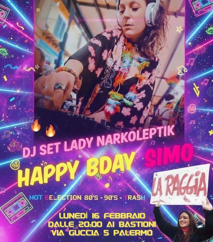 Per festeggiare insieme a chiunque voglia divertirsi e ballare sotto le sonorità delle selezioni musicali 80’s 90’s & trash della suprema dj Lady Narkoleptic